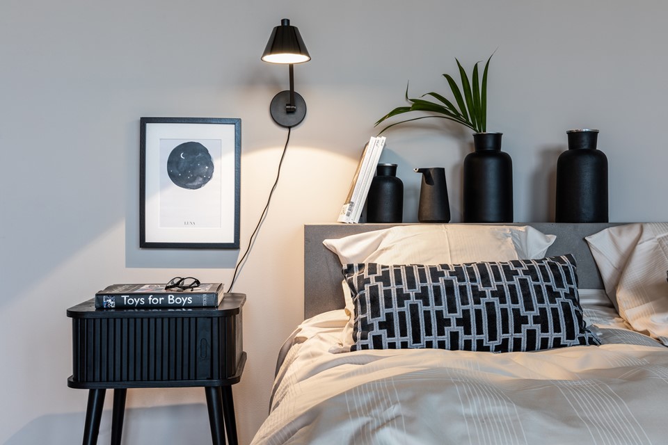 De bijzettafel Earthenware doorbreekt de strakke, rechte lijnen in de slaapkamer. De neutrale kleur van dit bijzettafel zorgt ervoor dat Earthenware als een kameleon in de slaapkamer past!