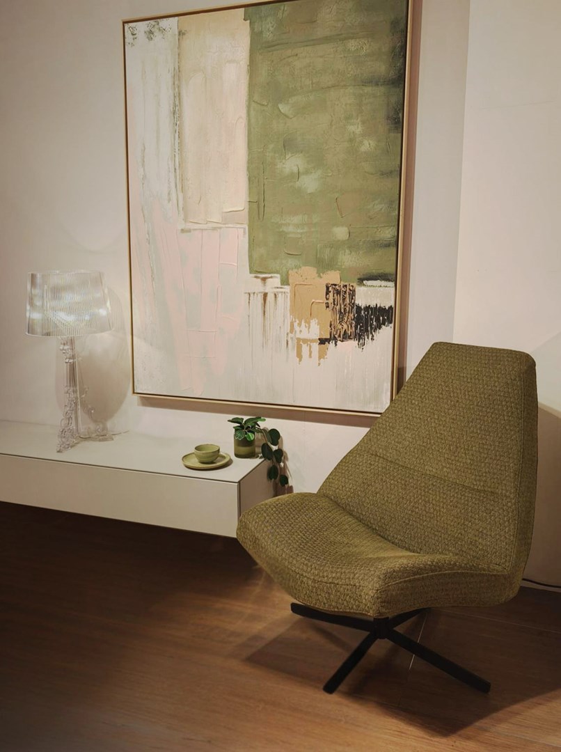Je hoeft geen hele wand te schilderen om een groots effect te bereiken. Een schilderij of poster met groentinten kan al voldoende zijn om sfeer toe te voegen.