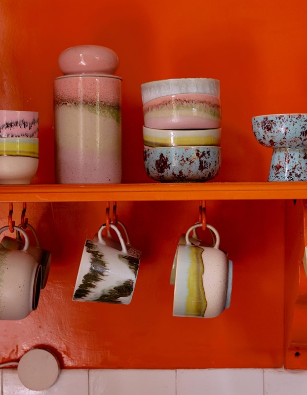 De 70’s ceramics zijn al jaren een van de populairste items van HKliving en dit najaar komt er een enorme uitbreiding van bijna 100 nieuwe stuks! Van koffiekopjes en borden tot schalen en serveerplanken. Allemaal met nieuwe kleuren en patronen. Nostalgisch en vertrouwd, maar tegelijkertijd vernieuwend. Alle nieuwe exemplaren kun je perfect combineren met bestaande exemplaren tot je de ultieme tafelsetting hebt die perfect past bij een knusse herfst- of winterdiner.