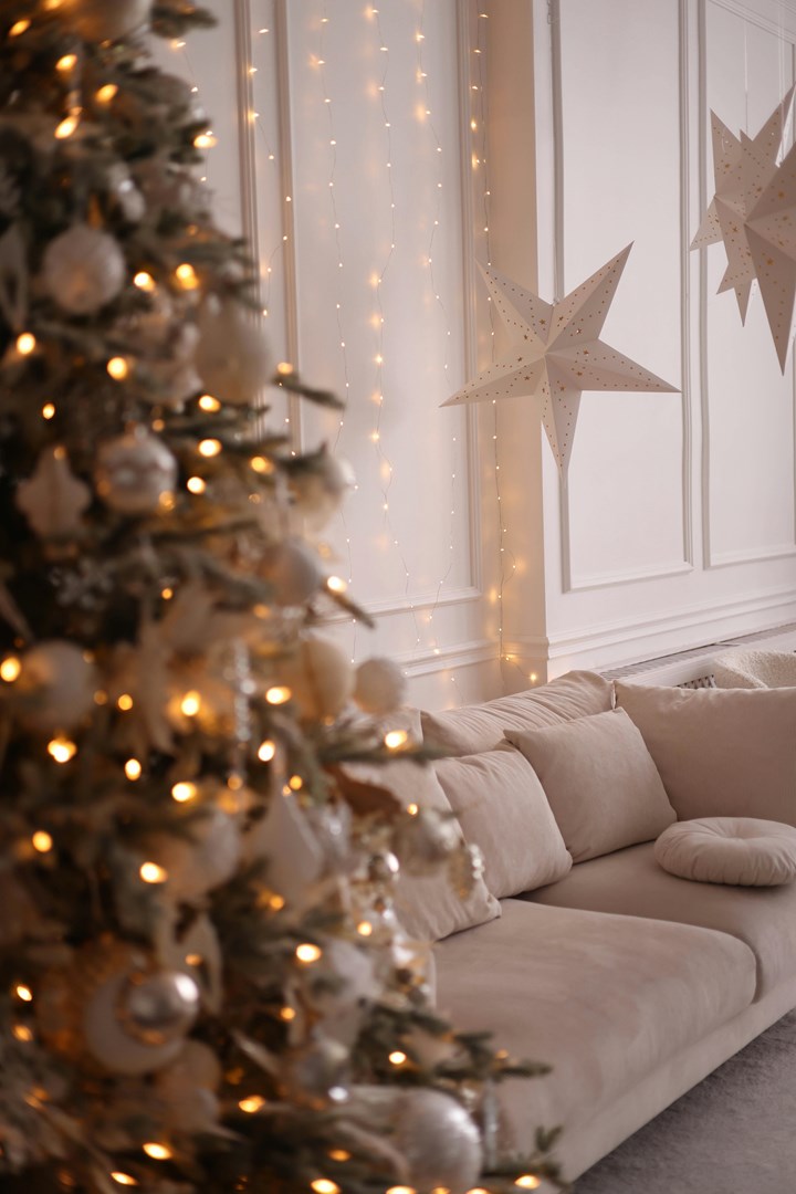 Sfeer in huis tijdens de kerst komt voor een groot deel uit licht. Kaarsen, lichtslingers en kleine lampjes zorgen voor een warme gloed die je neutrale interieur meteen in kerstsferen brengt. Combineer verschillende hoogtes en materialen voor een speels effect. Plaats bijvoorbeeld kaarsenhouders in verschillende maten op een houten dienblad of leg een subtiele lichtslinger langs de vensterbank.