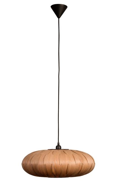 Hanglamp Bond van DutchBone laat alle ogen op zich richten door zijn stijlvolle en natuurlijke uitstraling. De kap is gemaakt van gevouwen houtfineer waar gemakkelijk het licht doorheen schijnt voor een sfeervol effect. De kabel is van zwart textiel en kan in hoogte aangepast worden. De hanglamp komt in 2 uitvoeringen: een ronde en ovale vorm die leuk met elkaar gecombineerd kunnen worden.