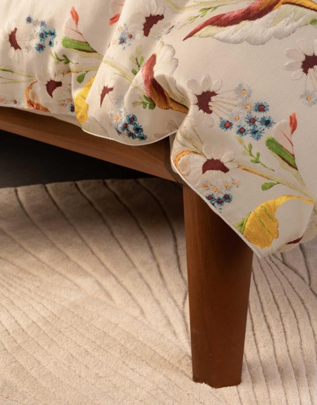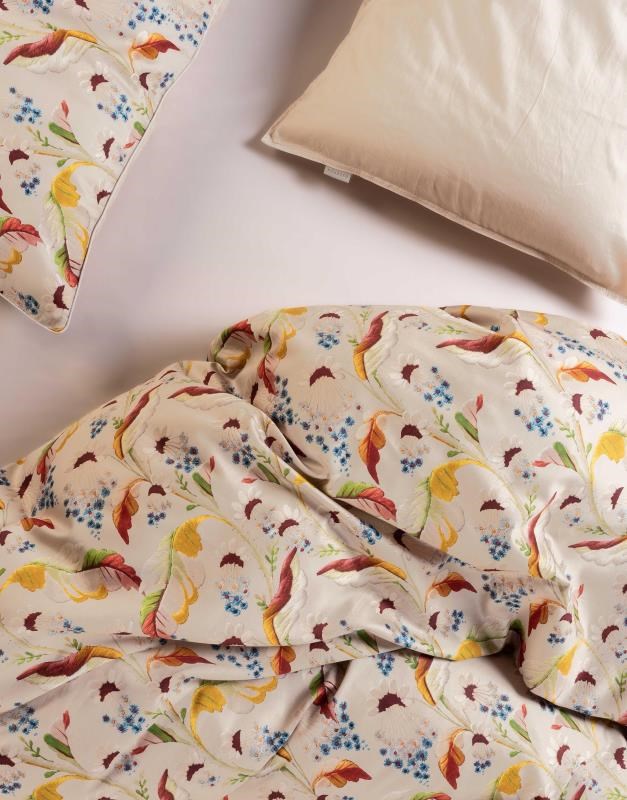 Het Essenza Aurelina dekbedovertrek heeft een zachte, verfijnde uitstraling en past mooi in uiteenlopende slaapkamerstijlen. De rustige achtergrondtint wordt gecombineerd met een subtiel bloemendessin waarin fijne details en kleurnuances zorgvuldig zijn uitgewerkt. De inspiratie komt uit historisch Frans textiel, waarbij handgeborduurde bloemmotieven zijn vertaald naar een print die dicht bij het oorspronkelijke karakter blijft. Dit geeft het dekbedovertrek een tijdloze en elegante uitstraling, zonder overheersend te zijn. Het dekbedovertrek is gemaakt van biologisch katoen satijn, een gladde en soepel vallende stof met een lichte glans. Het materiaal voelt zacht aan, ademt goed en zorgt voor prettig slaapcomfort in elk seizoen. De achterzijde is effen en vormt een rustige tegenhanger van het dessin aan de voorzijde. Dankzij de extra lange instopstrook over de volledige breedte blijft het dekbed netjes liggen en is het bed eenvoudig strak op te maken.