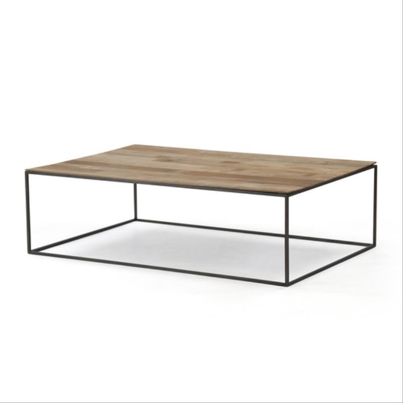 Salontafel Ferron is een stoere salontafel gemaakt van staal en teakhout en is leverbaar in diverse afmetingen.