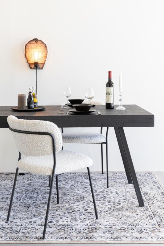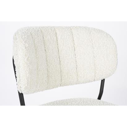 De stijlvolle stoel Jaline geeft sfeer in elke eetkamer. Het zwarte frame in combinatie met bouclé zorgt voor een zachte en stijlvolle stoel.