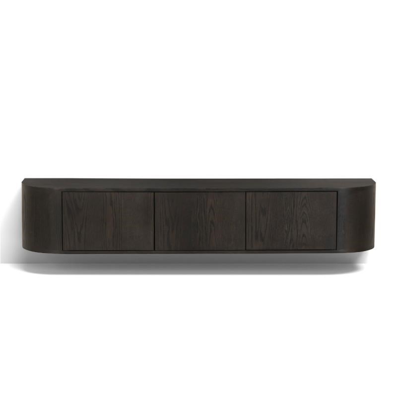 Het zwevend Tv-meubel Nouveau valt op door zijn zachte lijnen en verfijnde rondingen, die meteen een gevoel van harmonie creëren. Het hoogwaardige eikenhoutfineer en de zorgvuldige afwerking geven het dressoir een luxe uitstraling, waardoor het een stijlvolle en tijdloze toevoeging is aan ieder eigentijds interieur.