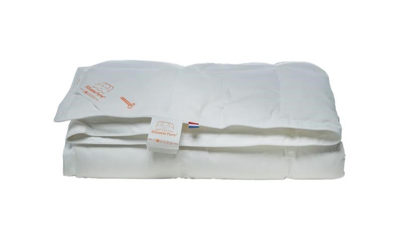 Het comfortabele en luxe donzen dekbed Silvana Pure Oranje is gevuld met 90% gerecycled dons (GRS gecertificeerd). In combinatie met een fijn geweven katoenen hoes valt dit dekbed heerlijk soepel. Het dekbed is geschikt voor mensen met een huisstofmijtallergie. Hoewel het dekbed wasbaar is op 60 graden is het al voldoende om het dekbed dagelijks te luchten en voorzicht op te schudden om het dekbed fris en volumineus te houden. Het dekbed is onderdeel van de Pure serie. Deze dekbedden zijn verkrijgbaar in zes kleuren met elk hun dikte en warmte. Daarnaast zijn de dekbedden voorzien van knoopsgaten, waardoor je alle Pure dekbedden met elkaar kunt koppelen. Op deze manier kun je zelf je eigen 4- seizoenen dekbed samenstellen. De Pure Oranje is het op één na dunste dekbed en daarmee geschikt voor de zomer. Het vulgewicht van het dekbed van 140 x 220 cm is 330 gram.