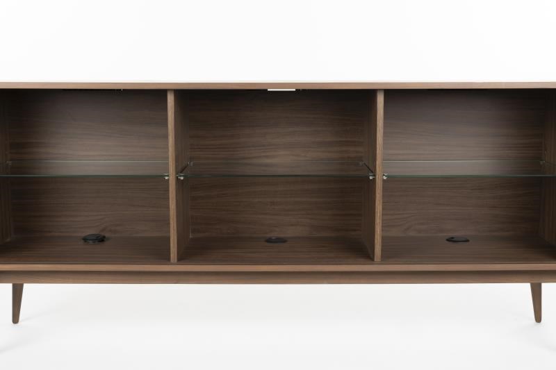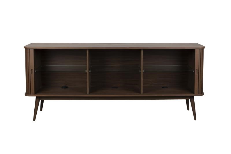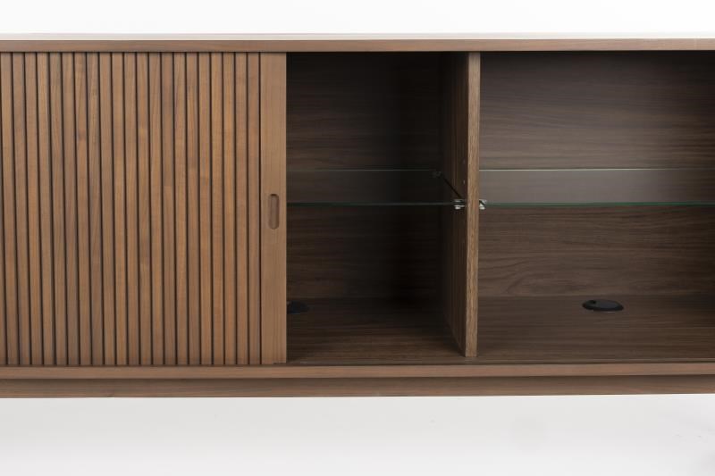 Geef je interieur een elegante upgrade met het Zuiver Barbier dressoir. Dankzij de iconische houten schuifdeuren die werken als theatergordijnen, bepaal jij zelf welk deel van je collectie een podium verdient. Achter de deuren schuilt een zee aan ruimte, voorzien van twee verfijnde glazen planken die jouw mooiste woonaccessoires optimaal laten uitkomen. Met slim afgewerkte kabeldoorvoeren is dit dressoir bovendien de perfecte plek voor al je audio- en tv-apparatuur, waardoor kabels netjes uit het zicht blijven en je zithoek een opgeruimde uitstraling behoudt.